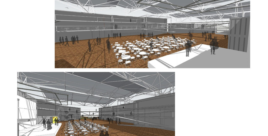 Um sistema de circulação através de rampa e escada prevê a ocupação